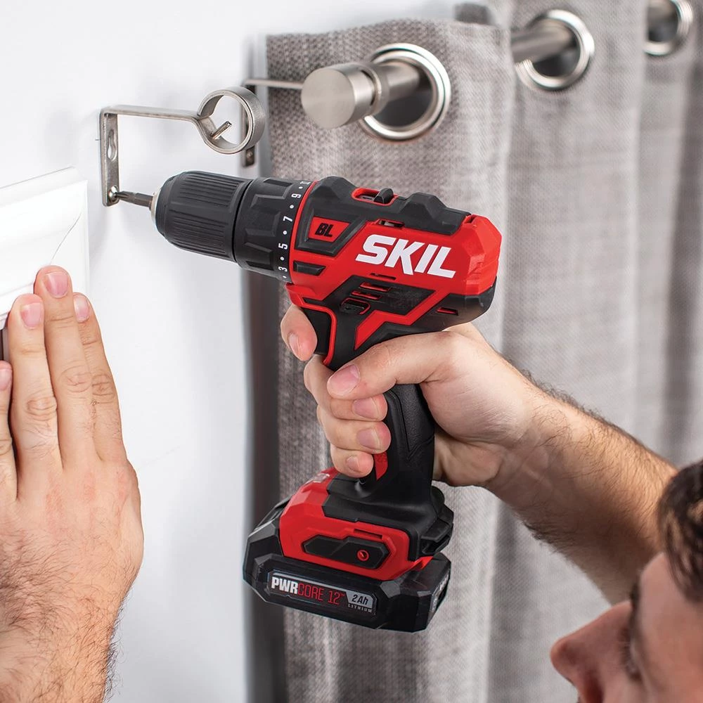 This cordless drill and impact driver combo kit is what you need to get the job done. This set includes two SKIL PWR CORE 12™ tools designed for compact power, efficiency and performance: Brushless 12V 1/2 Inch Cordless Drill Driver and 1/4 Inch Hex Right Angle Impact Driver, plus a PWR CORE 12™ 2.0Ah Lithium Battery with PWR ASSIST™ mobile charging and a PWR JUMP™ Charger. The Drill Driver has a Hybrid Chuck to secure bits with check jaws or lock a 1/4” hex bit without tightening. The 90-degree head of the Right Angle Impact Driver provides access to hard-to reach applications such as inside cabinets and shelves.