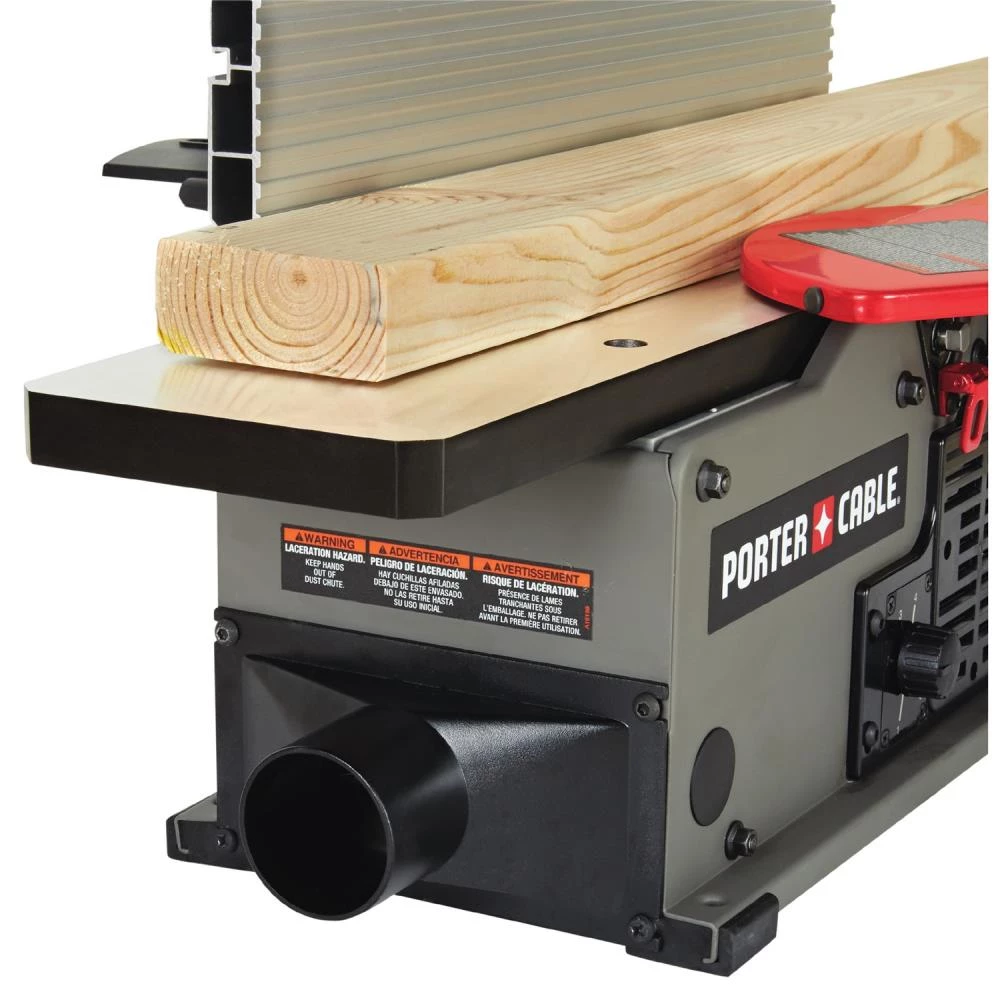 - 19.75-in L x 4.25-in W center-mounted fence provides support throughout cut for accurate edge jointing