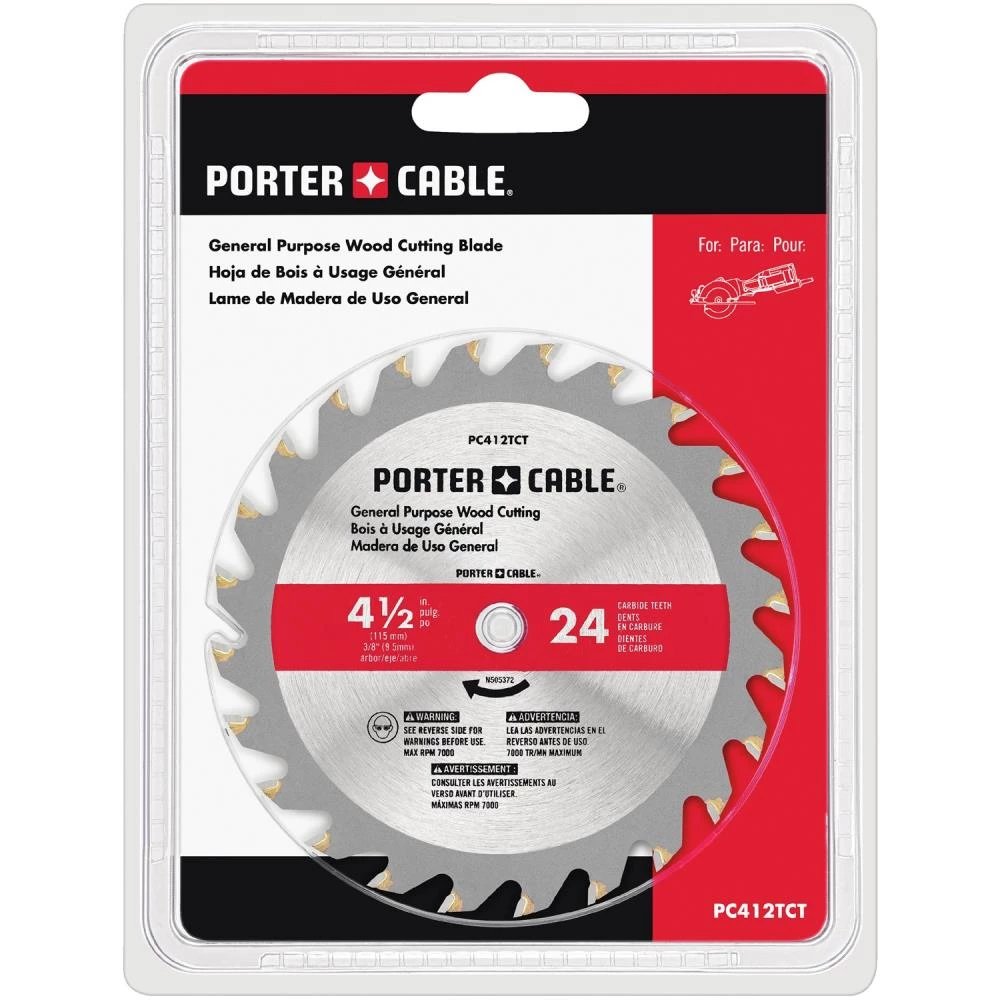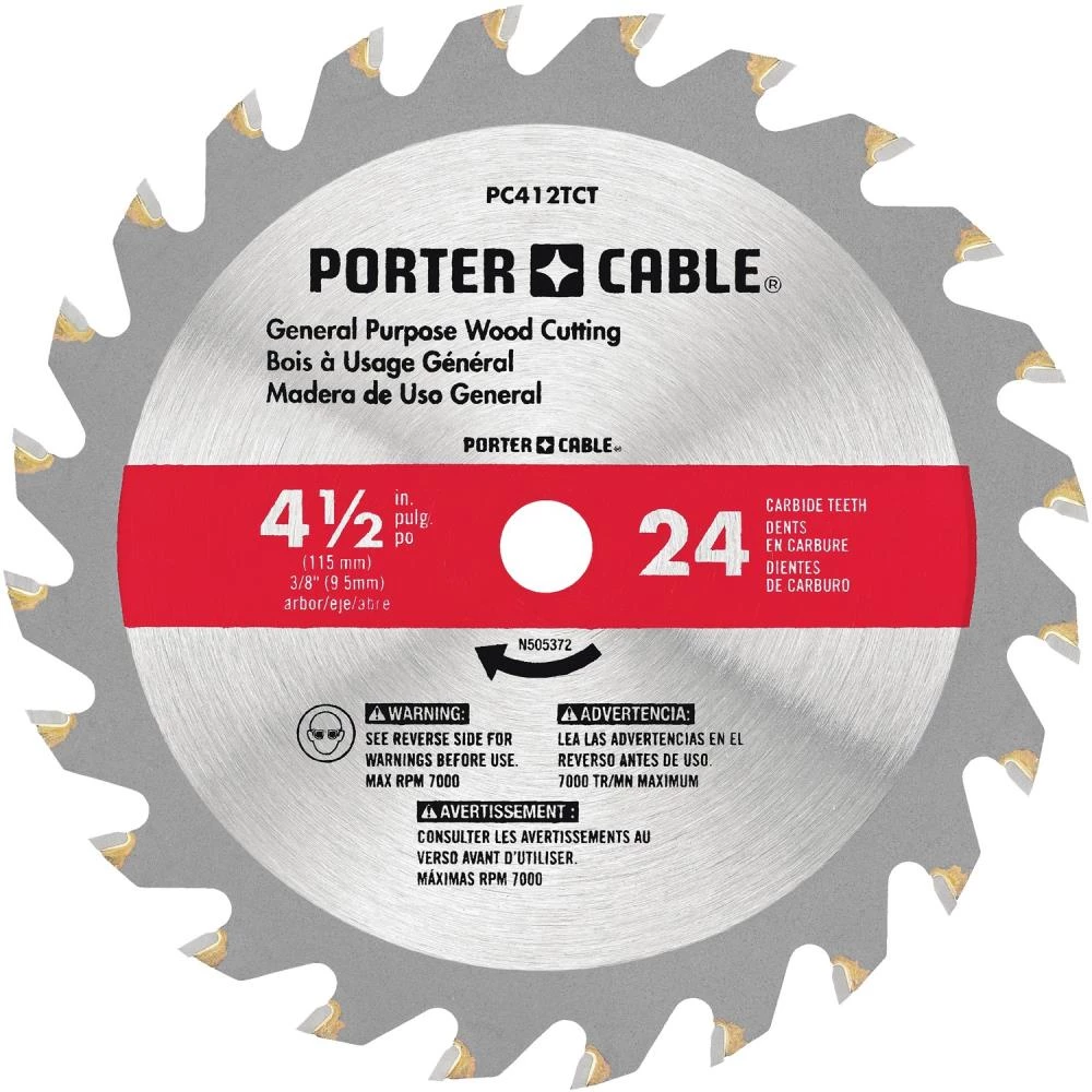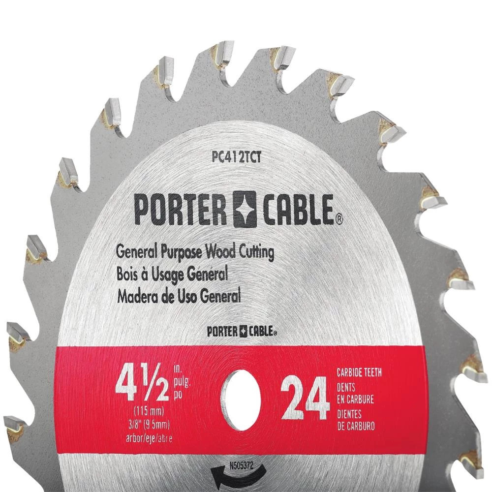 PC412TCT is a general purpose wood cutting saw blade made exclusively for the Porter Cable PCE381 corded circular saw. The 4-1/2-in blade features a 10-mm arbor and carbide teeth for long life.