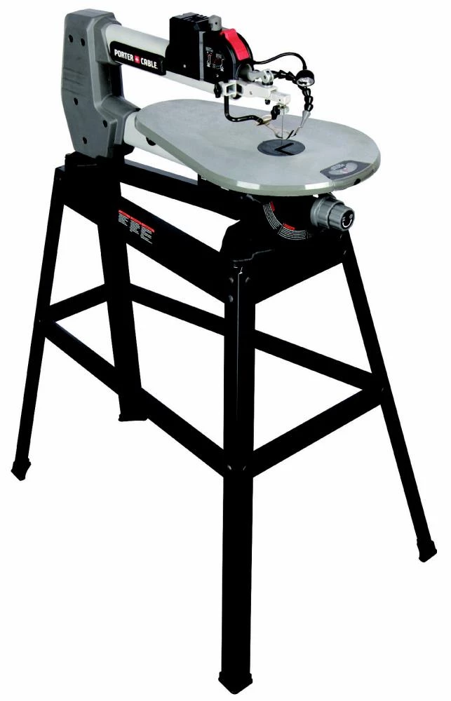 When you need to make detailed cuts in a variety of materials, this 1.6-amp scroll saw is the solution. The variable-speed controls can be set from 500-1,500-SPM to handles most applications. Upfront controls mean quicker access to speed, blade tension and work light. The cam action blade tension adjustment allows for quick blade changes of standard 5″ long plain-end and pinned blades. The die-cast aluminum dual-tilt table allows up to 45Β° cuts, while the patented tabletop bevel scale provides accurate angle readings. The built-in LED lamp illuminates the work area allowing you the visibility needed to create detailed and decorative items. The adjustable dust blower keeps your cut line visible. The included steel stand is durable and sturdy, so you won’t take up space on a table or other work surface.