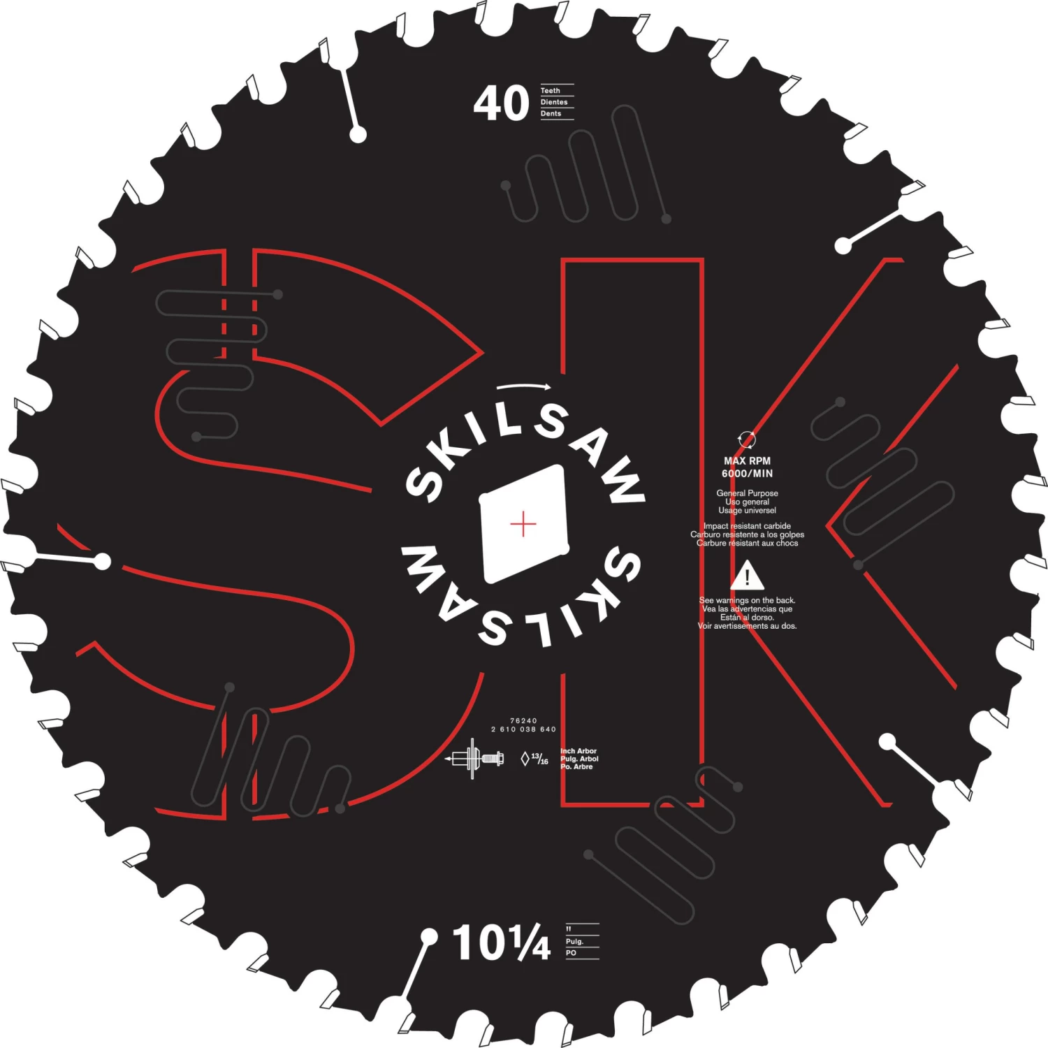 The SKILSAW blade is triple sharp for smooth cuts and excellent finish. Control cut shoulders reduce kickback, while the micro-grain carbide stays sharper, resists impact damage for longer blade life. There’s less friction and pitch buildup for fast effortless cutting with its speed coat finish. Thin kerf makes for faster cuts and less waste, but the extra hard steel plate resists bending and deflection. Blade has a diamond knockout.