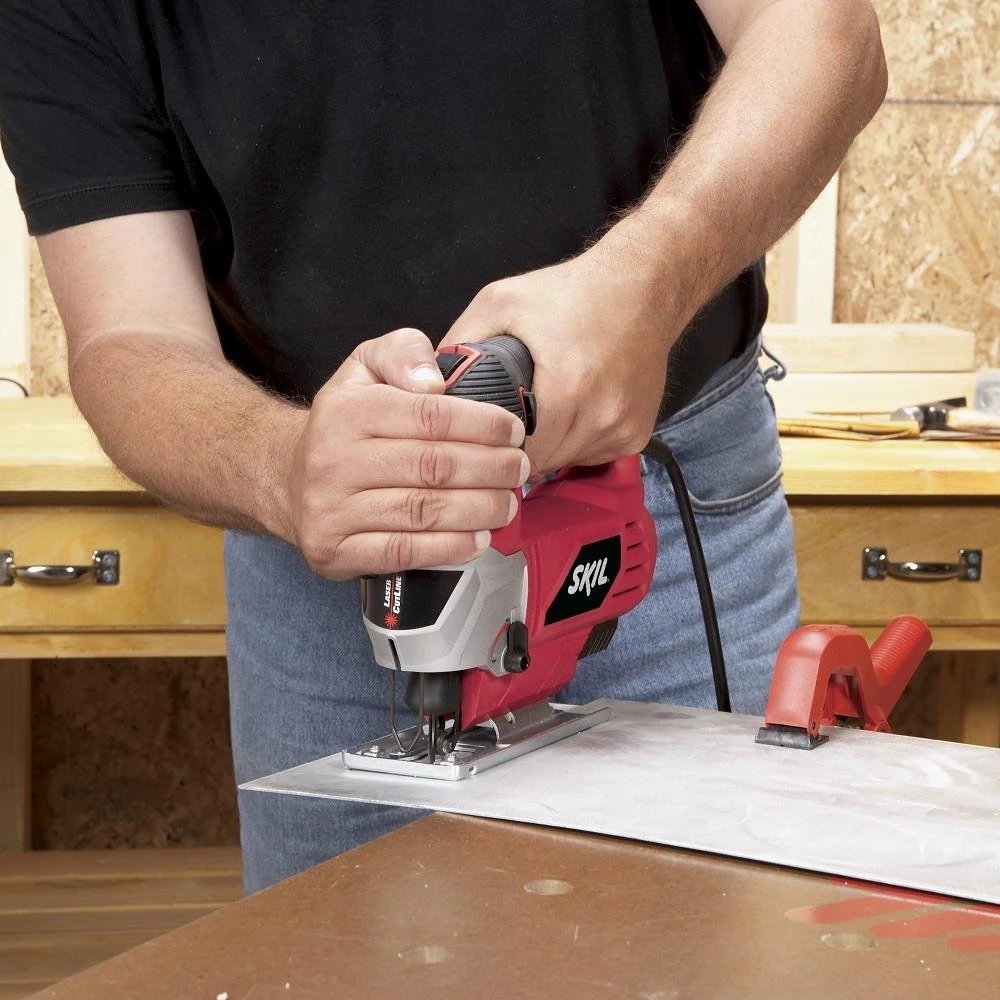 If power and precision are important in your woodworking projects, then this jig saw is for you. The 4-position orbital cut control lets you set the type of cut desired, from fast to smooth. Cut lines will be on point with the built-in laser guide. A unique stable foot design provides more control when starting a cut, so ragged cuts are a thing of the past. So go ahead, take your projects to the next level with the help of our 6-amp orbital action laser jig saw, model 4495-02.