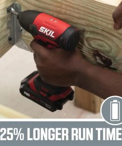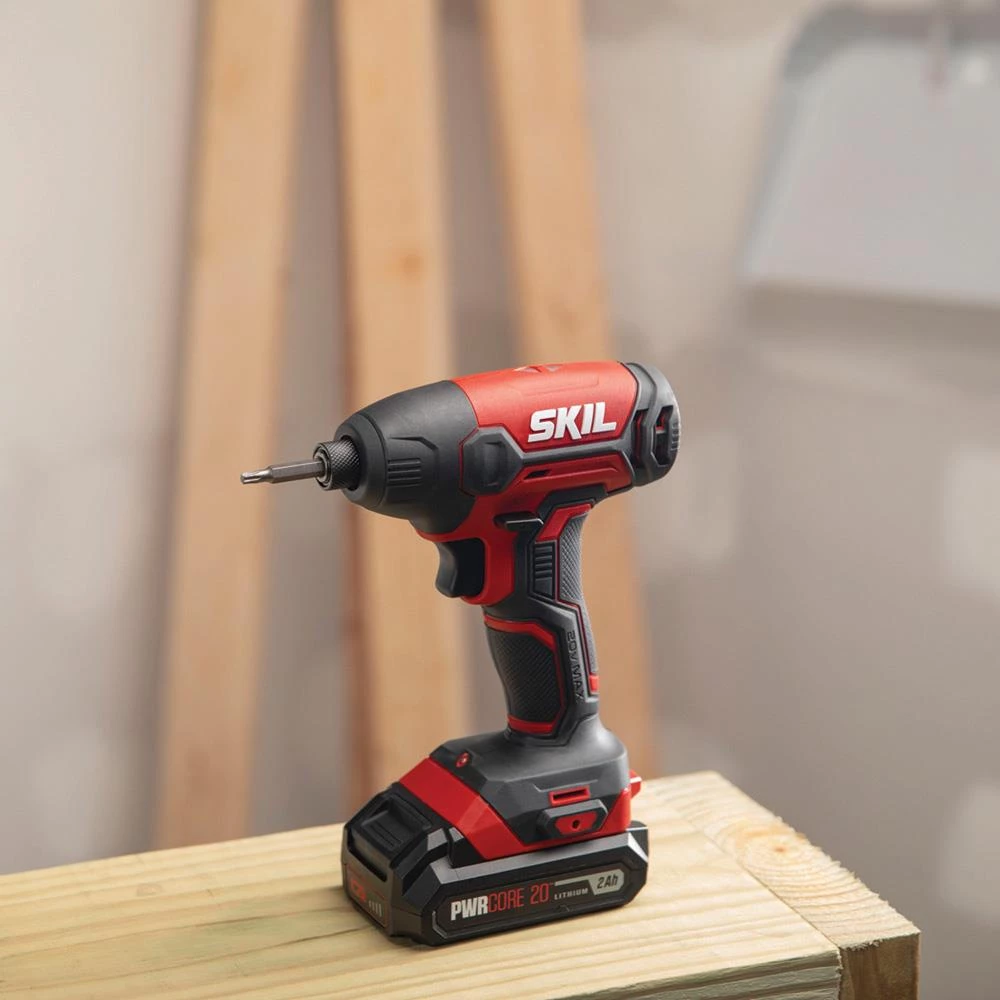 The SKIL 20-Volt 1/4-Inch Hex Cordless Impact Driver delivers controlled power up to 1,100 in-lbs of torque. This impact drill can tackle thick, dense woods as well as tough jobs driving or tightening large fasteners. The 20-volt impact driver comes with a PWR CORE 20™ 20-volt 2.0Ah lithium battery and 20-volt charger.