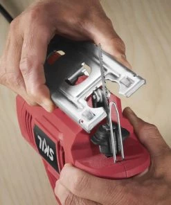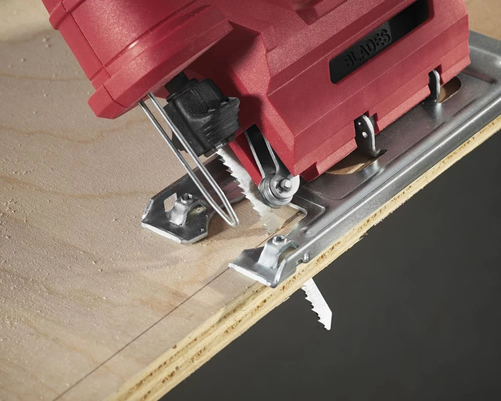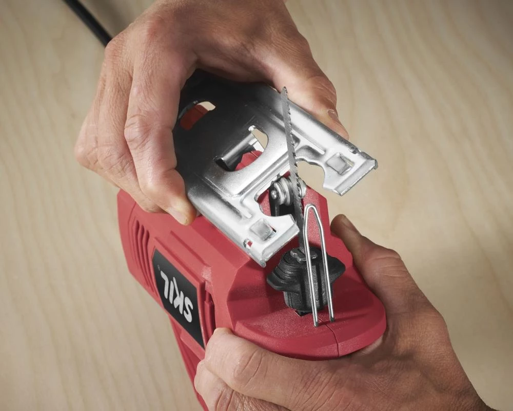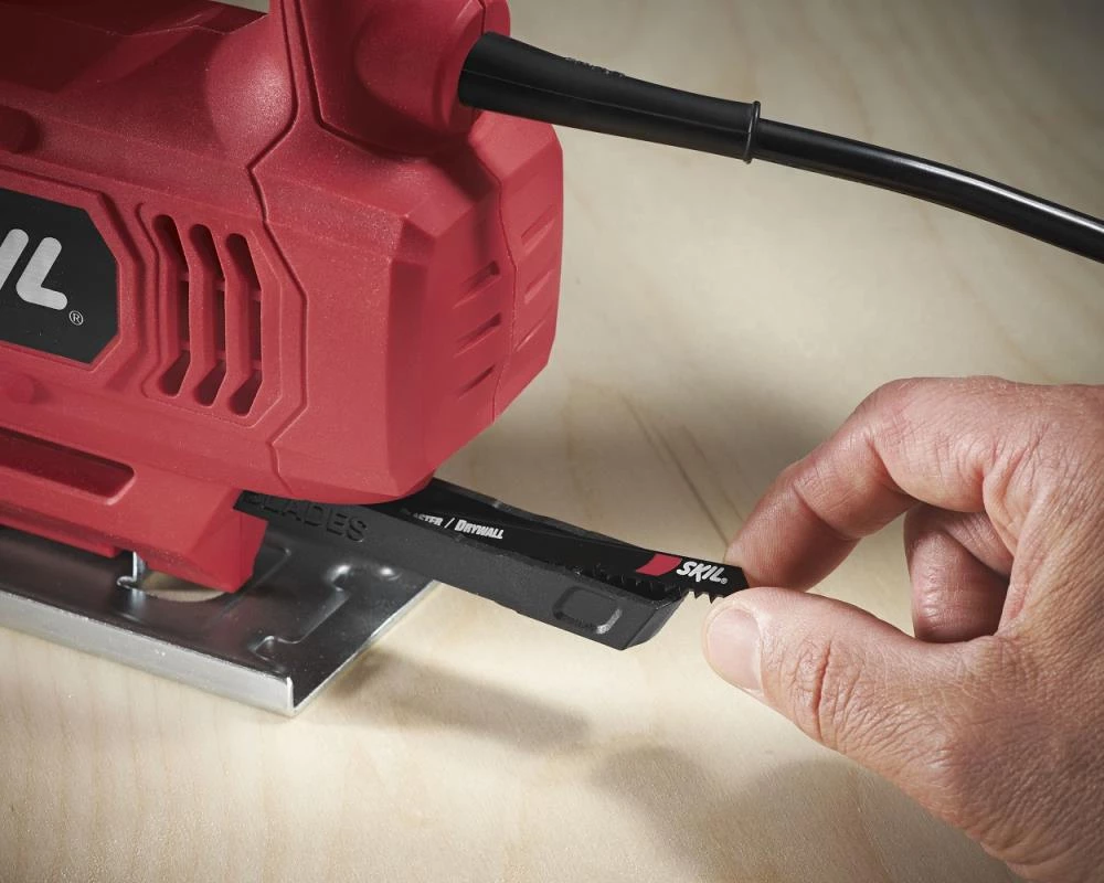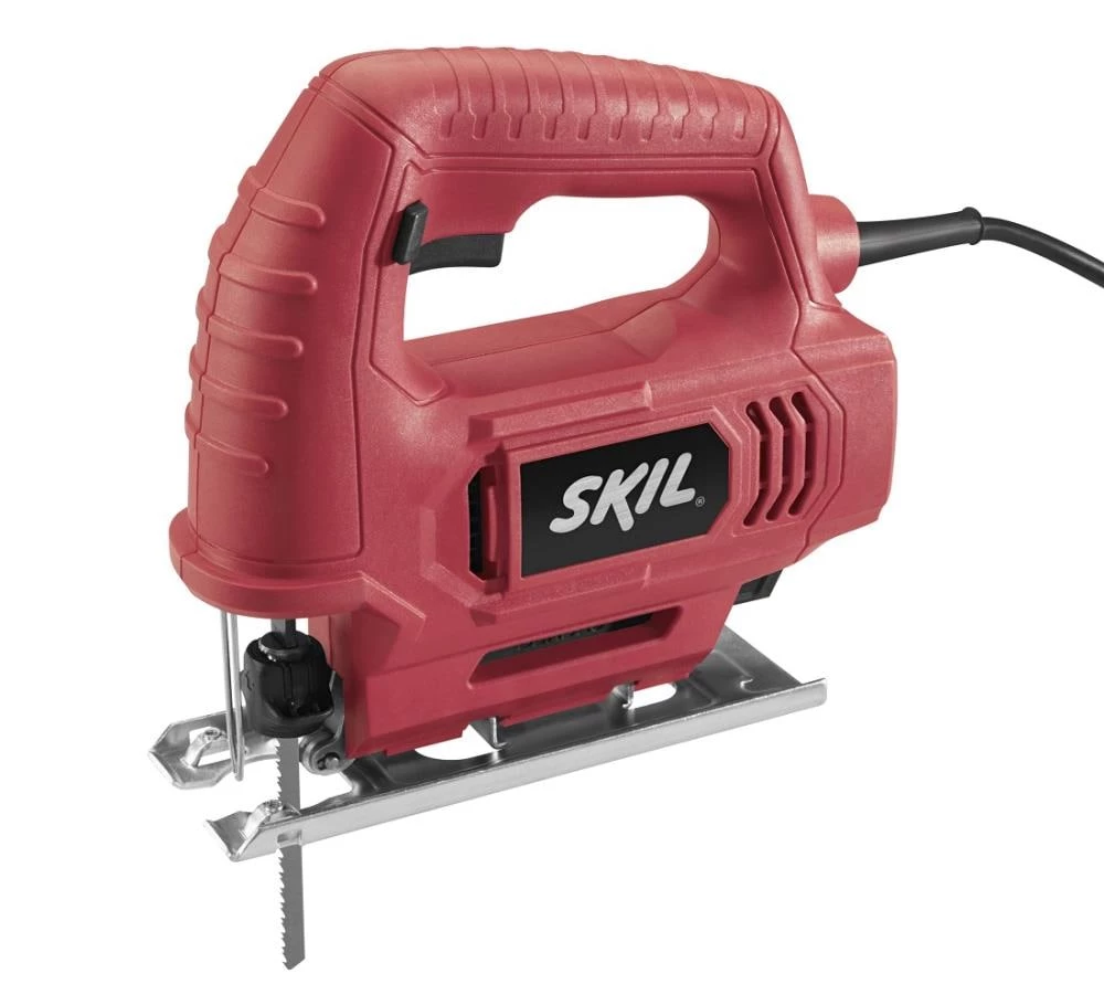 Expand your woodworking creativity by cutting curves and angles in your projects with our SKIL model 4295-01 jig saw. It has loads of easy-to-use features and can easily handle aggressive, angled or smooth cuts. The variable-speed trigger control lets you control the speed of the cut with a touch of the finger. Switching blades throughout your project is effortless with the tool-less blade changing feature. The sturdy steel foot has an open design and there’s even a dust blower to ensure there’s always a clear view of the cut line. Unlock your creative side with our SKIL model 4295-01 jig saw!