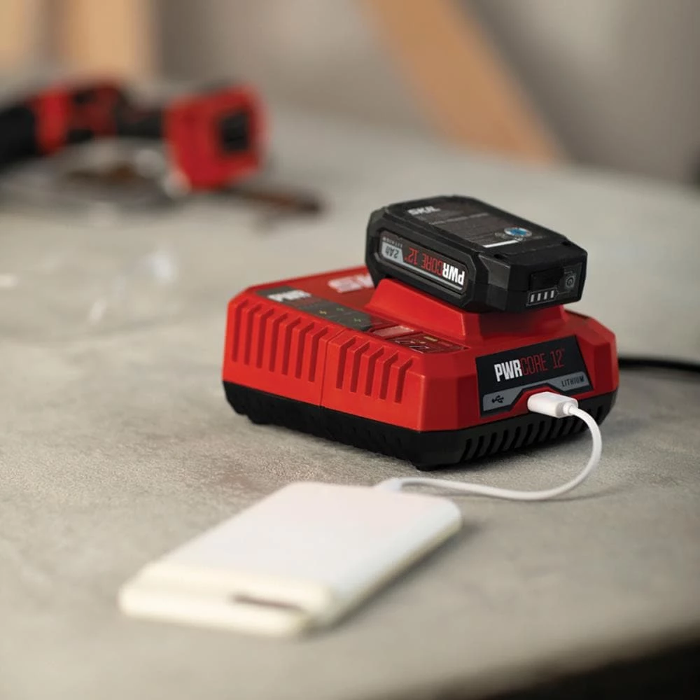 - Charges a PWRCore 12 12-volt 2.0Ah battery up to 25% in just 5 minutes (battery not included)
