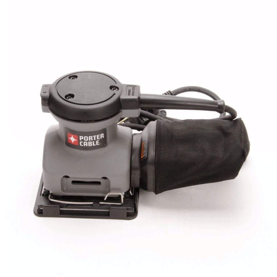 Porter-Cable 1/4 sheet orbital finish sander. Fine finishing before coatings. Less aggressive material removal than random orbital sanders. Sanding into corners.