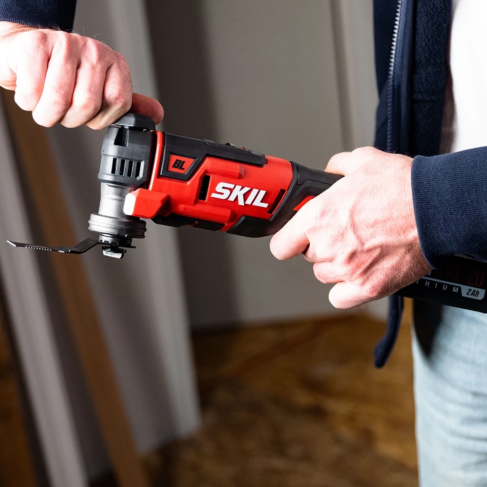 From cutting to sanding, scraping to chipping, this oscillating tool can do it all. The SKIL PWR CORE 20™ Multi Tool is built for power and performance, and runs on the innovation of SKIL PWR CORE 20™ lithium battery technology for longer battery life. This oscillating tool features the innovative Vibration Reduction System (VRS) which isolates the motor from the body of the tool to reduce vibration transfer and increase comfort, so you can power through hard cuts with ease. Plus—with variable speed control to finesse delicate or tough materials, constant speed technology to keep your grind consistent even through a harder material, and a soft start feature to get you started gently—you’ll have control all the way to the finish.