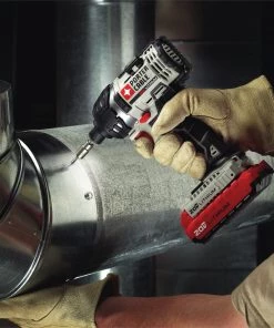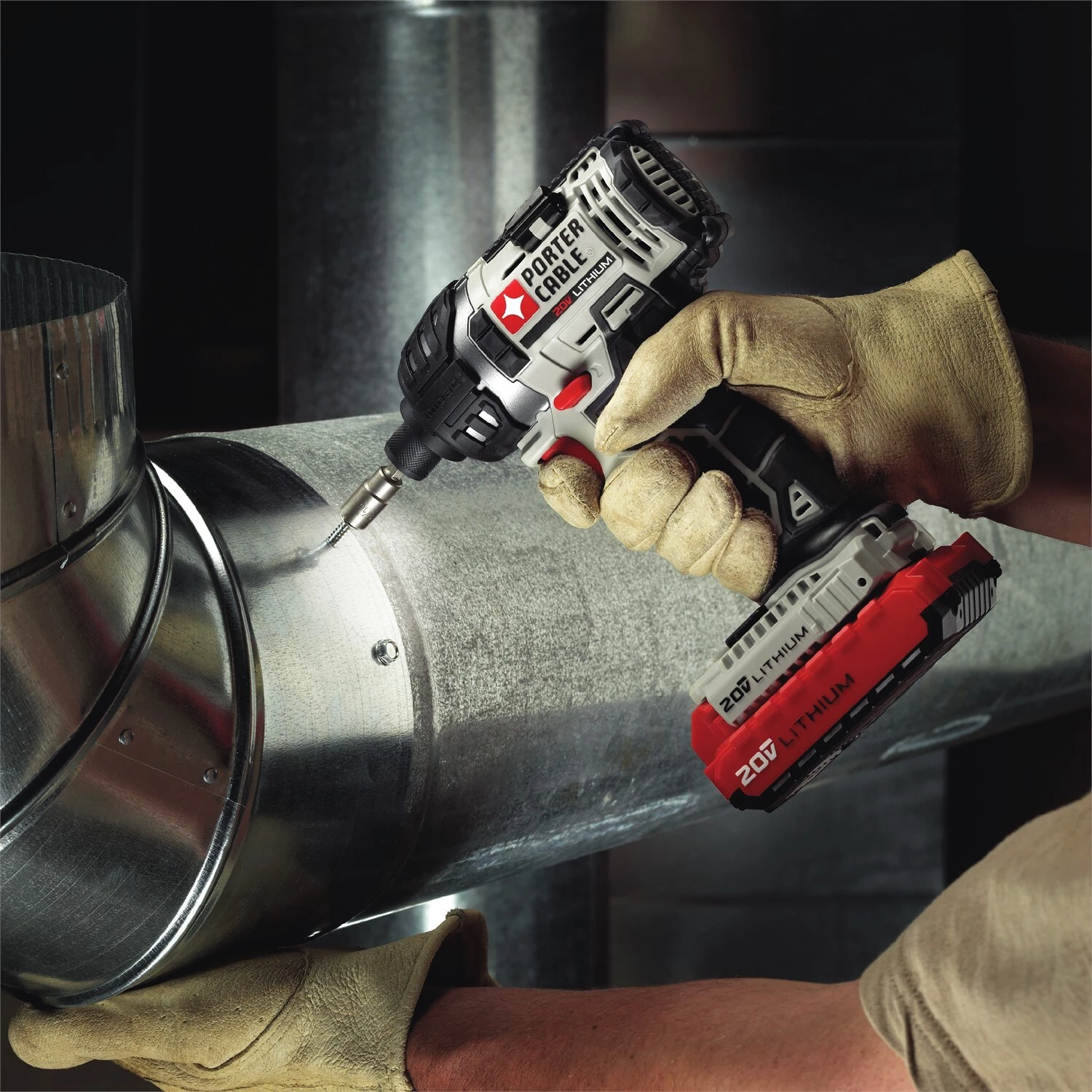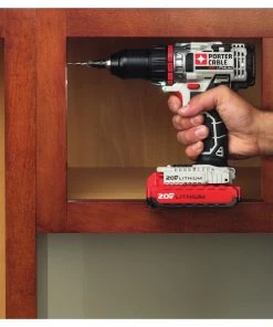 PORTER-CABLE 20V MAX lithium ion 2 tool Combo kit. Drill/driver features 330 units watts out (UWO), two speed gear box (0-400/0 – 1,600), compact design (7.6-in long/3.8 lbs) and 1/2-in plastic ratcheting chuck. Impact driver features 1,450-in-lbs of torque, 0-2, 900 RPM, 0-3,100 bpm, compact design (6.2-in long/3.5 lbs) and a one handed easy load 1/4-in hex chuck.