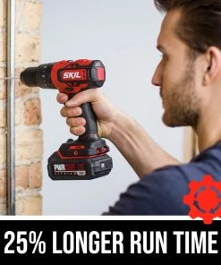 3-In-1 Concrete Drill from SKIL PWR CORE 20™ . Take on tough jobs in no time with the SKIL PWR CORE 20™ Brushless 20V 1/2 Inch Hammer Drill. Perfect for driving into stone, concrete, brick, and mortar, this hammer drill gives you three functions in one, over 17 torque settings, and precision and power. Easy transitions between the hammer drill, drill, and screwdriver modes as well as quick bit changes save you time and keep your work going. This set comes with a PWR CORE 20™ 2.0Ah Lithium Battery and Automatic PWR JUMP Charger.