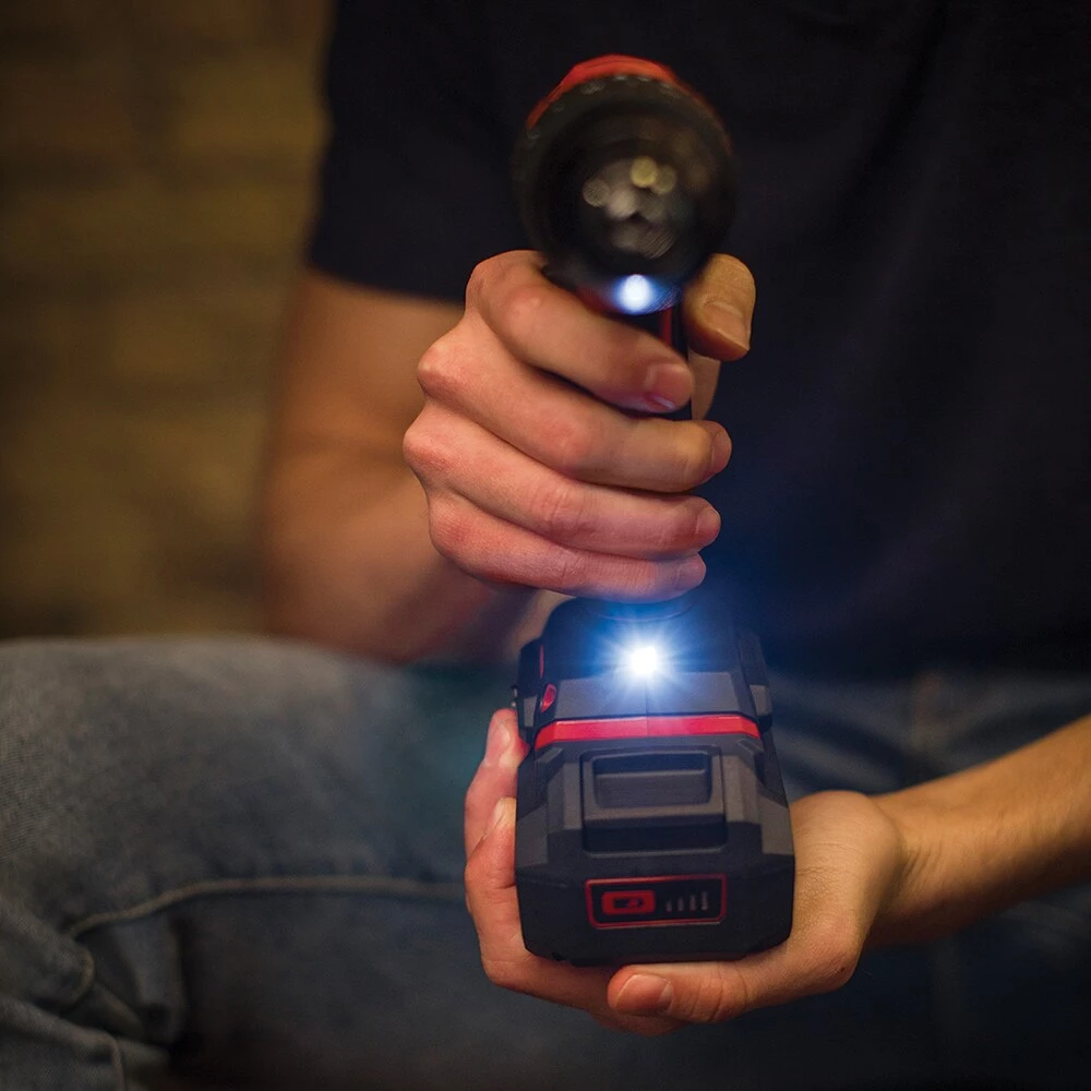 - 20V CORDLESS HAMMER DRILL KIT—Includes a PWR CORE 20™ 2.0Ah Lithium Battery and PWR JUMP™ Charger