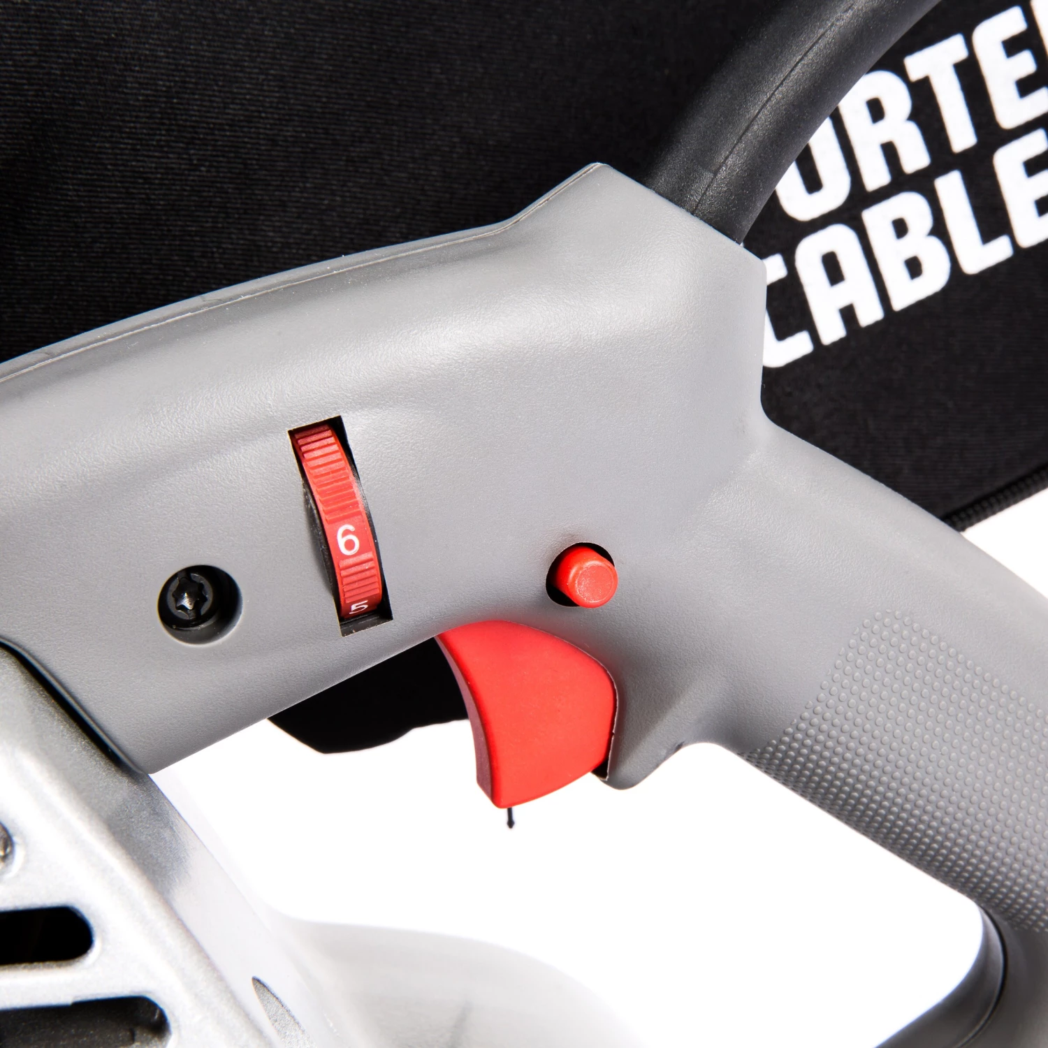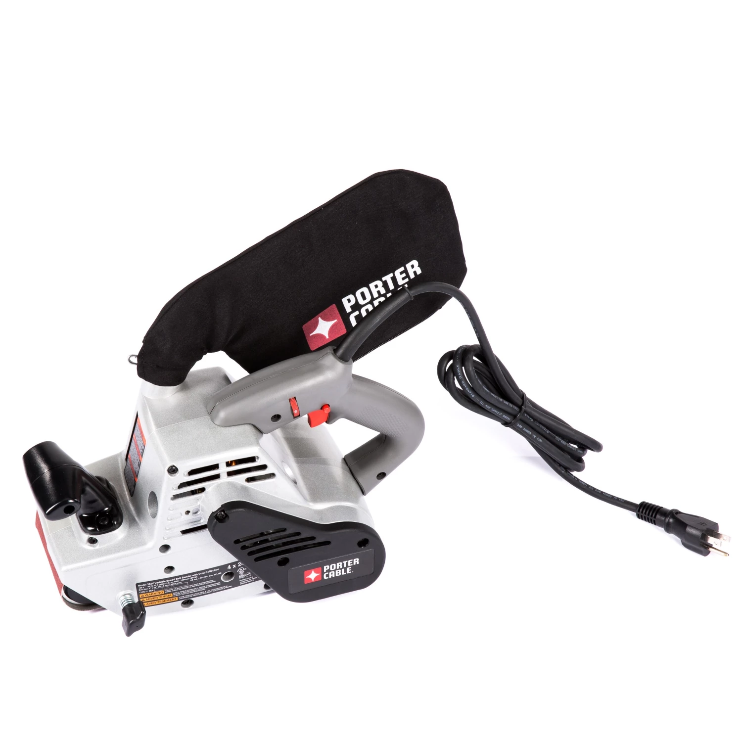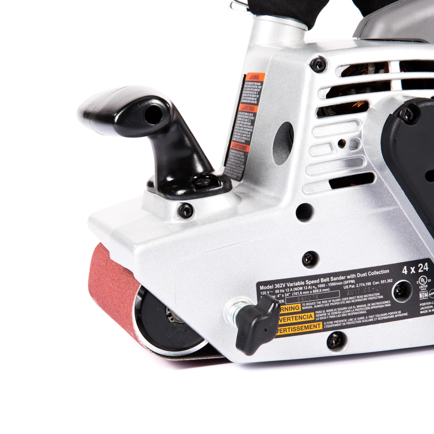 Powerful 12 amp variable speed belt sander is designed for flush sanding up to vertical surfaces. Variable-speed dial is conveniently placed on the handle, allowing belt speed adjustment from 1,000 to 1,500 SFPM. Includes fingertip belt-tracking knob for quick, accurate belt adjustments, and a quick-release belt-change lever.