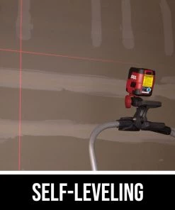 - The laser level tool projects a bright red horizontal line and a vertical line onto surfaces up to 50 feet