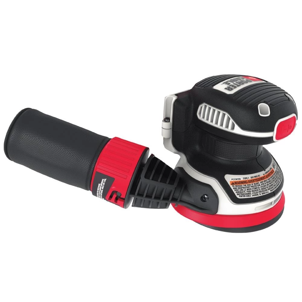 The PORTER-CABLE 20V MAX cordless random orbital sander carries on our legacy of woodworking sanders. Use the detachable dust bag for convenient dust collection. Attach our 20V MAX wet/dry vacuum to the vacuum port to keep a clean work area inside or outside when working on big jobs. This sander has a 5-in orbital sanding pad with 3/32-in orbit diameter for efficient material removal. At 12,000 OPM, this sander can power through almost any project.