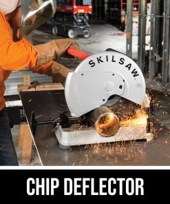 - Stamped steel guards and chip deflector for chip management and jobsite durability