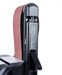 - Sanding belt tilts up to 90 degree vertical, and the unsupported underside allows for sanding of curved work pieces