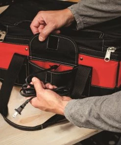 The PCCB122C2 power tool battery charging bag includes 2 compact 20 V MAX* batteries and a removable dual port charger with a USB port. The bag has the ability to store up to 10 batteries or 2 tools and comes with a divider section to keep charged and uncharged batteries separate. The dual port charger will fully charge 2 batteries simultaneously in just 40 minutes.