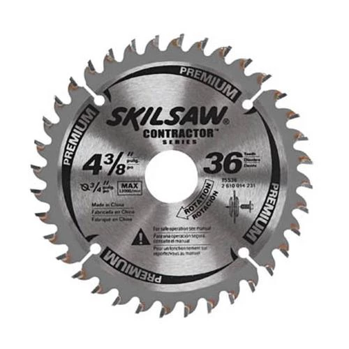 SKILSAW 4-3/8-inch X 36-tooth C3 carbide-tipped blade is for cross/miter/rip cuts, ideal for laminate flooring. Genuine replacement blade for the 3600 SKIL flooring saw.